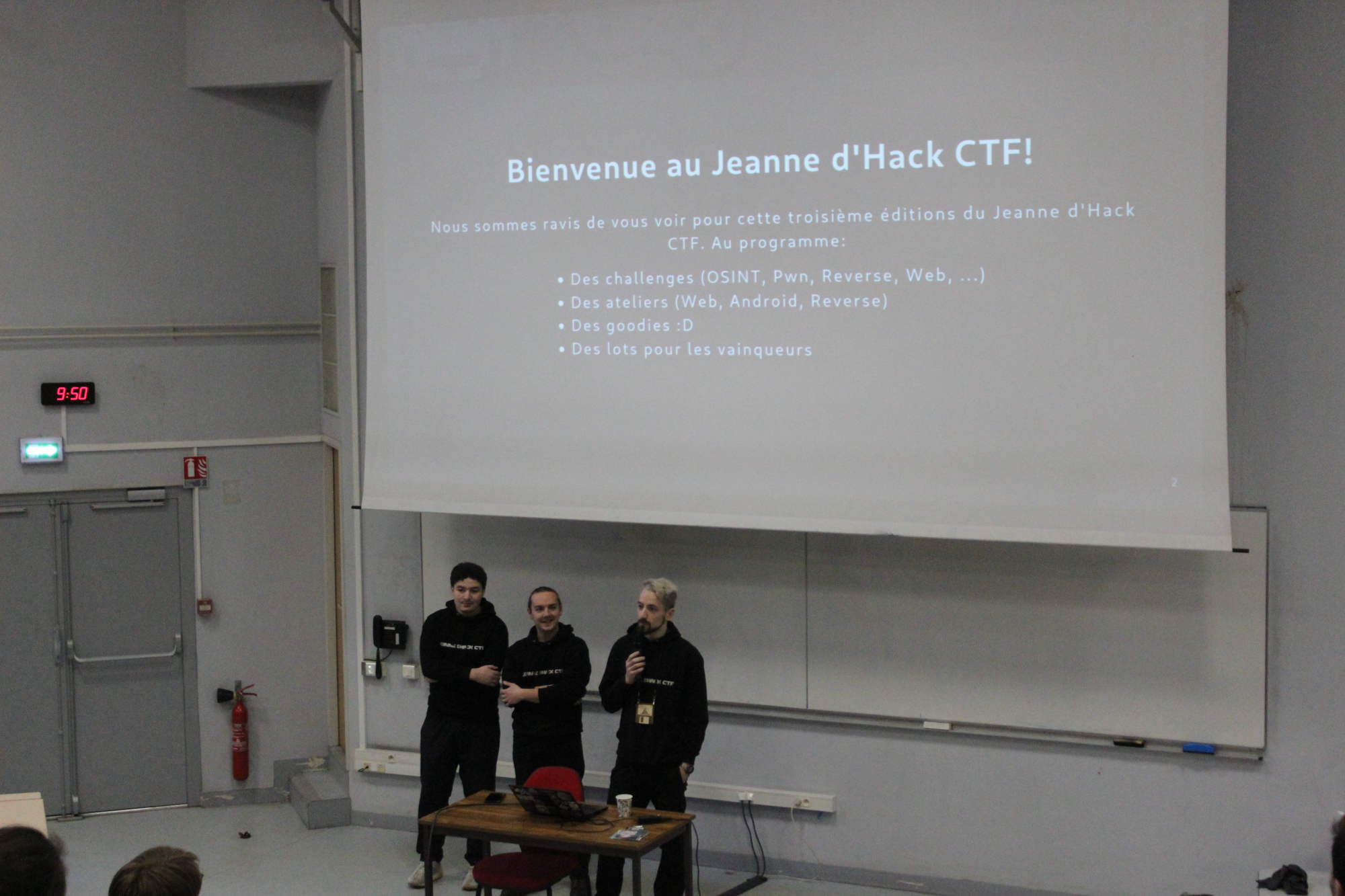 La troisième édition du Jeanne d’Hack CTF s’est déroulée du 30 janvier à 9h au 31 janvier à 16h, et ce fut une expérience mémorable! Avec 130 participants sur place et plus de 1000 en ligne, l’énergie était palpable! Cette année, des participants de différents pays ont pris part à l’événement, dont certains étaient présents sur place, ce qui en fait notre première édition “internationale”.
